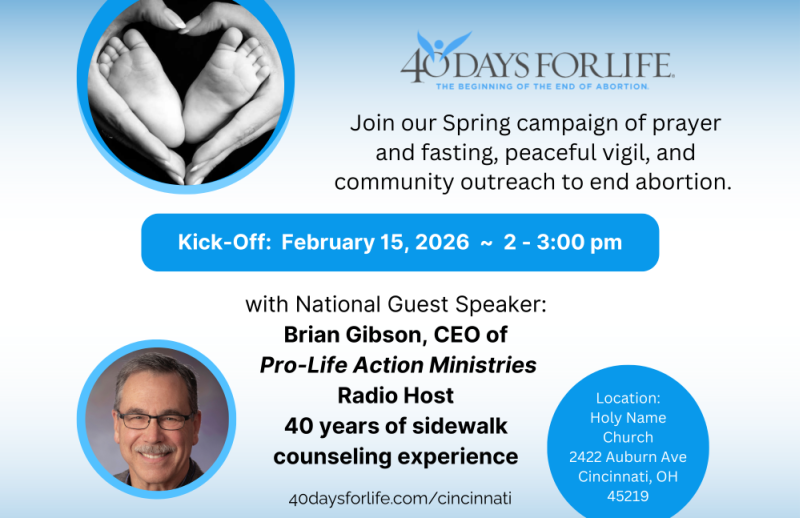 Radio host and Pro-Life Action Ministries CEO Brian Gibson, a sidewalk counselor for 40 years, will speak at the kickoff rally for this year’s campaign of prayer, fasting, and community outreach to end abortion.