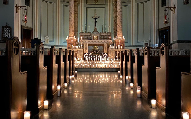 Dayton Catholic Young Adults sponsors a candlelight Mass every third Thursday in history Our Lady of the Rosary Church. Mass is usually followed by Lectio Divina of that day’s Gospel reading and a potluck social.