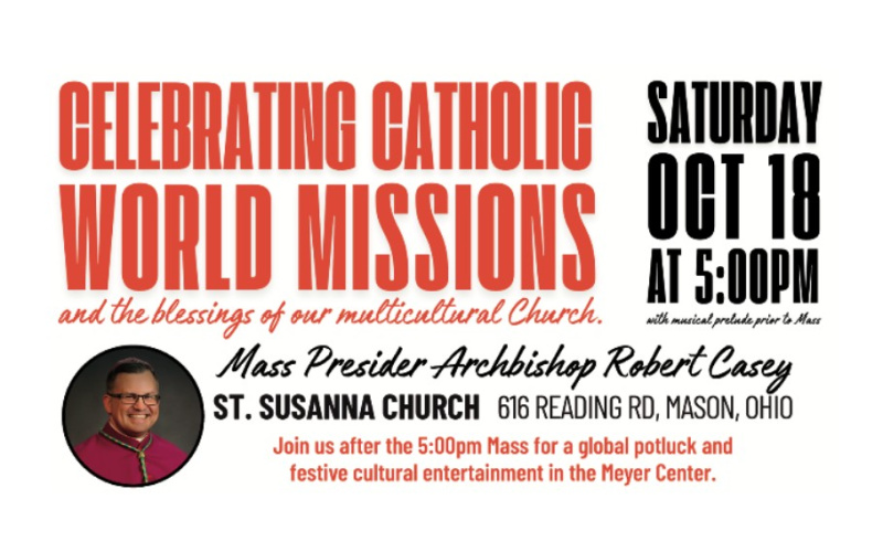 Archbishop Robert Casey will celebrate Mass for World Mission Sunday. Dinner and folk dancing performances will follow.