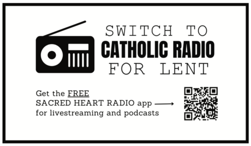 Invite your friends, family, and fellow parishioners to switch to Catholic radio for Lent! Download a poster to hang in your parish or a sheet of cards that you can give out to anyone who may be interested.